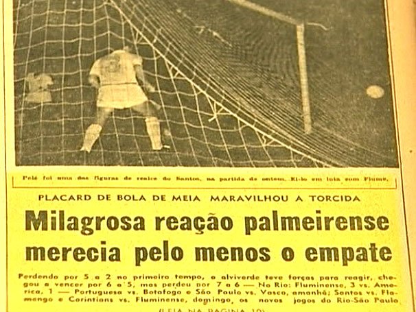Um dos jogos mais insanos do Brasil aconteceu quando a maioria de nós nem sonhávamos em nascer. Talvez nem nossos pais. O ano era 1958 e Santos e Palmeiras se enfrentaram pelo Torneio Rio-São Paulo. A partida terminou com 13 gols marcados! Santos 7x6 Palmeiras.